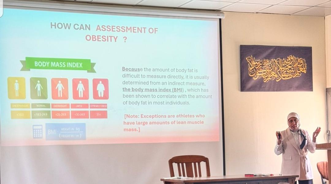 وهدفت المحاضرة التوعية على المخاطر الصحية المتعلقة بالسمنة