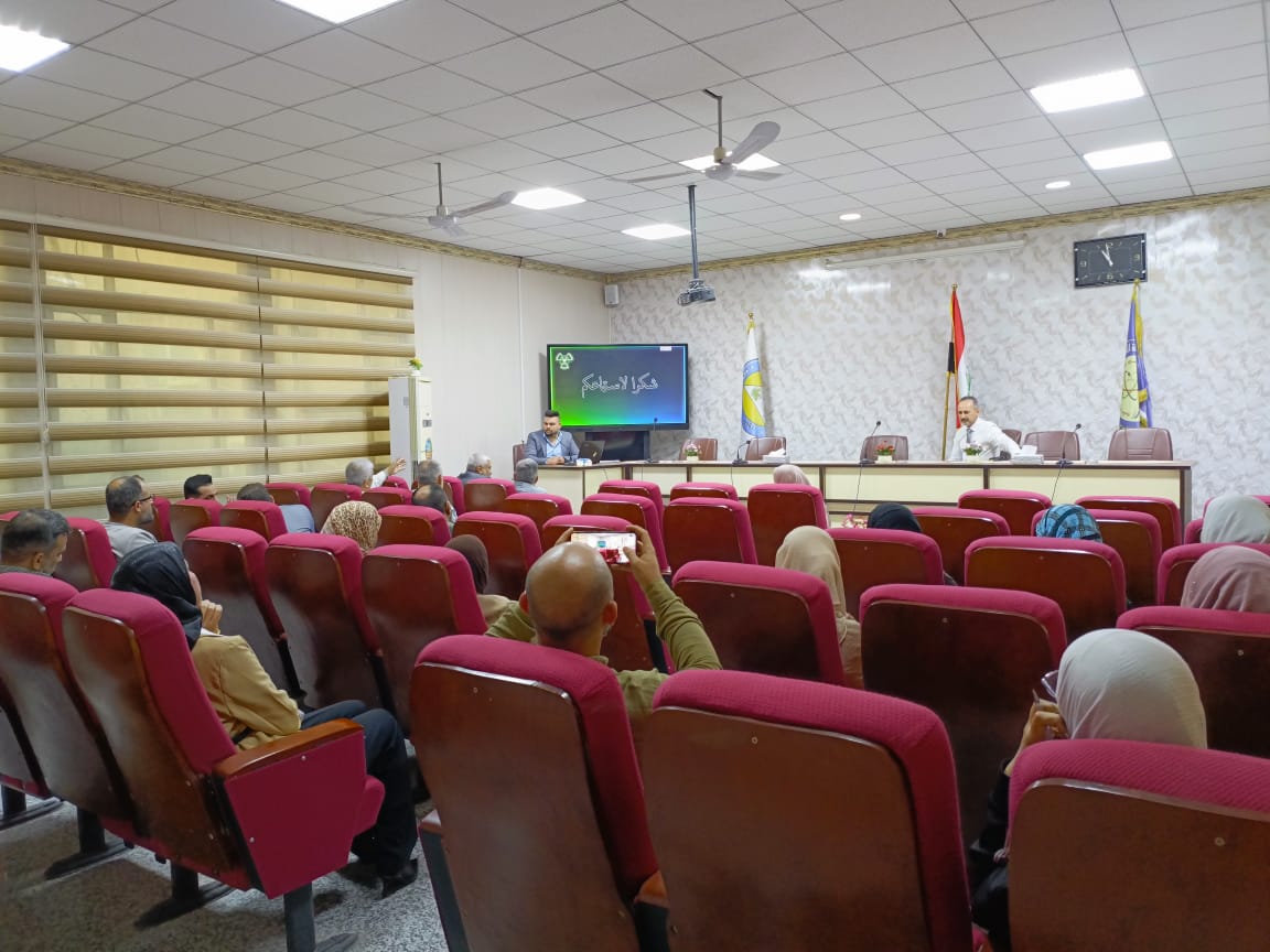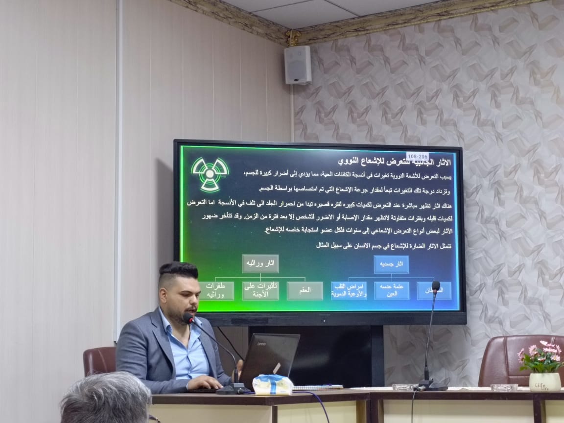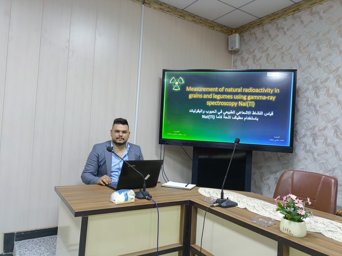 نظّمت كلية العلوم بجامعة البصرة حلقة نقاشية لطالب الدراسات العليا أحمد سامي محمد بعنوان النشاط الإشعاعي الطبيعي في الحبوب والبقوليات باستخدام مطياف أشعة كاما NaI (Tl).