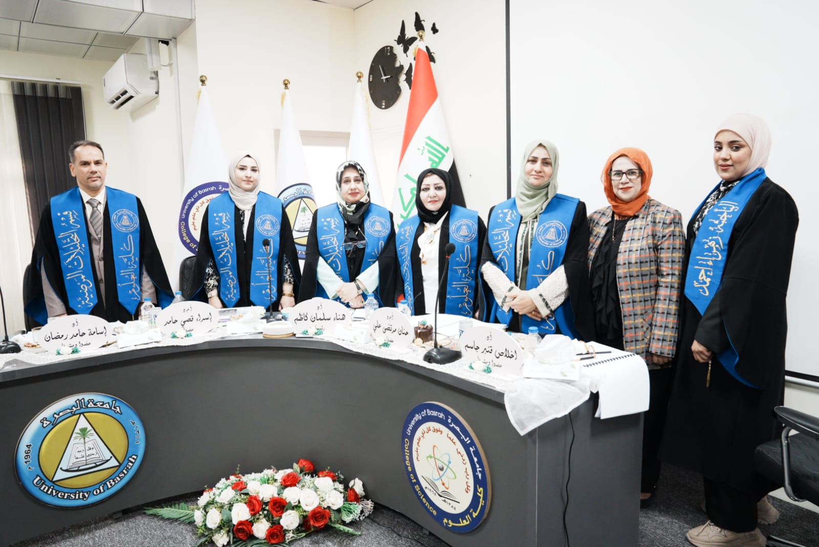 نظم قسم التحليلات المرضية في كلية العلوم بجامعة البصرة مناقشة رسالة الماجستير الموسومة " العلاقة بين اللبتين والأبيلين مع الألبومين والبروتين الكلي والبروتين التفاعلي سي لدى مرضى ارتفاع ضغط الدم "