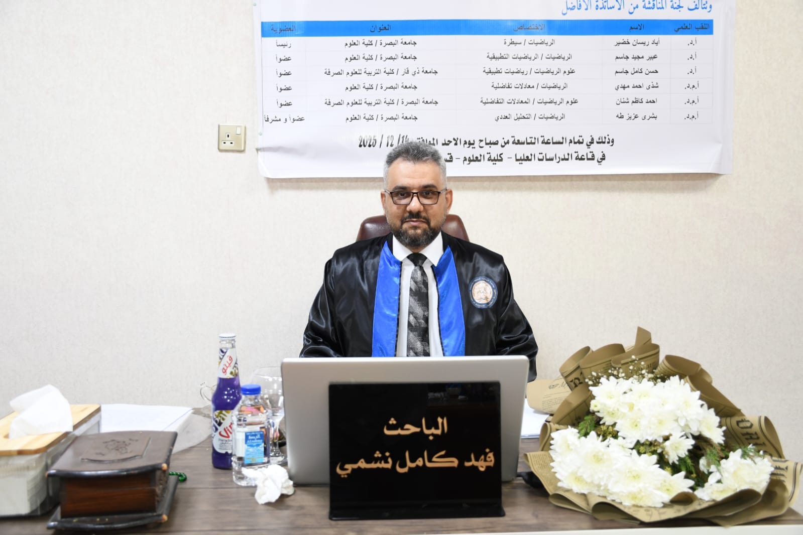 ناقشت كلية العلوم في قسم الرياضيات أطروحة دكتوراه بعنوان (تقنيات السبلاين لحل بعض المعادلات التفاضلية الجزئية الكسرية الزمنية) لطالب الدراسات العليا فهد كامل نشمي . تهدف الاطروحة إلى دراسة المعادلات التفاضلية الجزئية الكسرية (FPDEs) بإعتبارها صياغة موسعة للمعادلات التفاضلية الجزئية الكلاسيكية (PDEs) واستخدام طريقة دوال B-spline الرباعية لإيجاد الحل العددي للمعادلات التفاضلية الجزئية ذات الزمن الكسري ومعادلات التلغراف ذات الزمن الكسري. تضمنت الاطروحة استخدام أنواع مختلفة من B-splines لحساب الحلول العددية للمعادلات التفاضلية الجزئية الخطية وغير الخطية ذات الزمن الكسري. وبينت ان السبب الرئيسي لاستخدام B-splines لحل المعادلات التفاضلية الجزئية عدديًا هو خاصية الدعم المحلي لها، والتي توفر الدعم لدوال B-spline في فترات معينة (أي أنها تكون صفرًا في غير ذلك وغير صفرية في فترات محددة) واستخدام تقنيات الفرق المحدود تقوم بتفكيك مشتقات الزمن، وتقوم دوال B-spline بالتقريب المكاني.