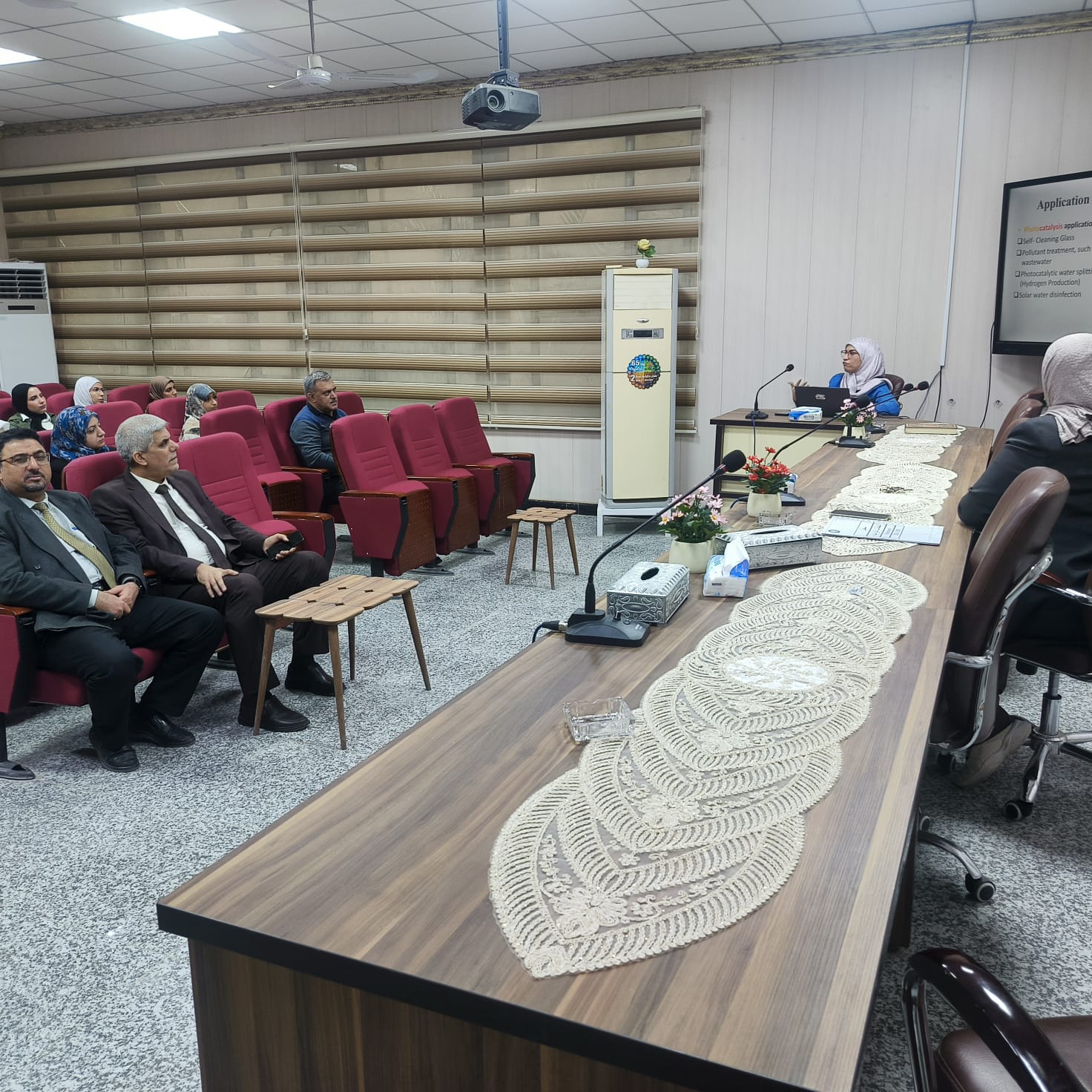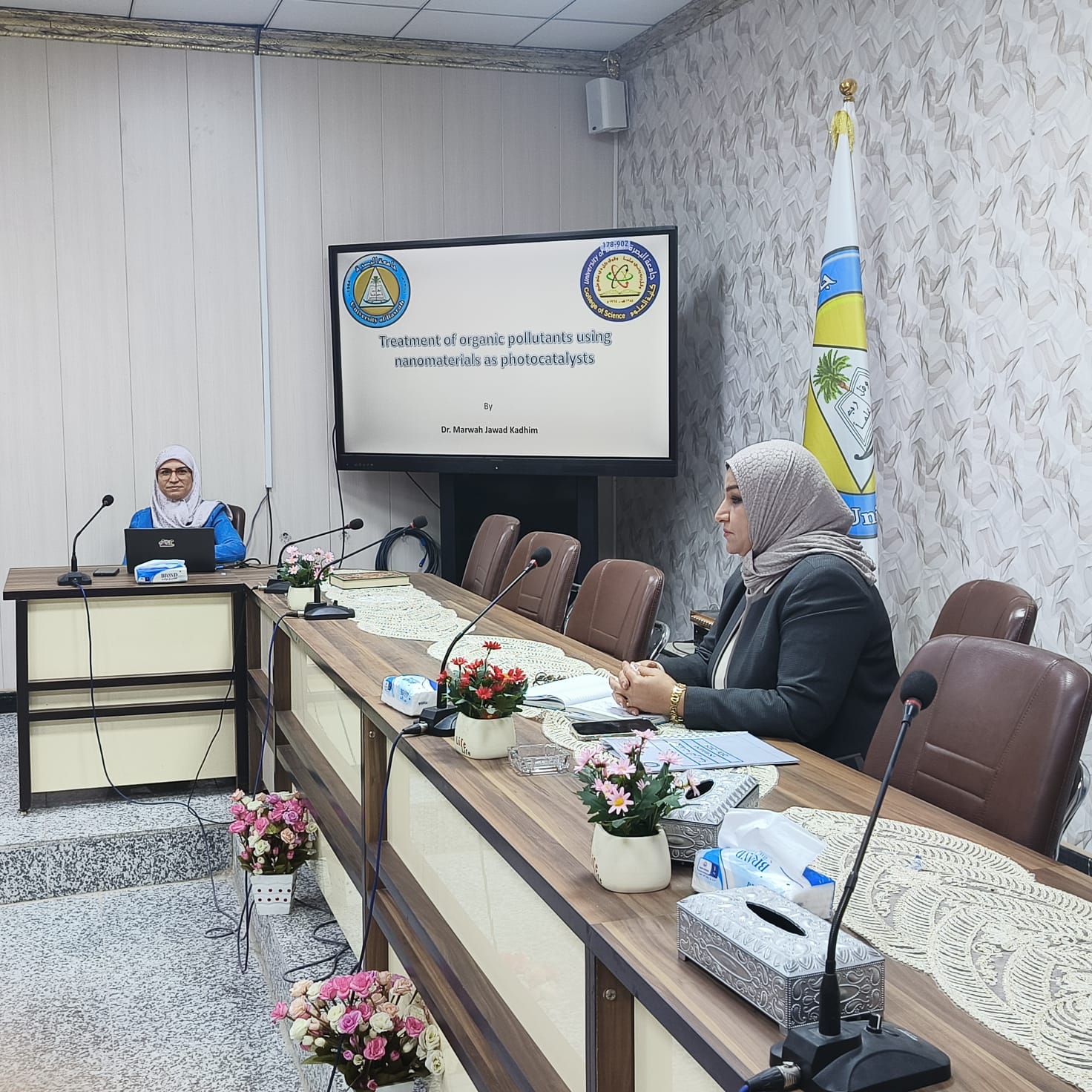 نظّمت كلية العلوم في جامعة البصرة حلقة نقاشية متخصصة بعنوان »معالجة الملوثات العضوية باستخدام المواد النانوية كمحفزات ضوئية«، قدّمتها التدريسية في قسم الفيزياء م.د مروة جواد كاظم، وذلك ضمن نشاطات الكلية العلمية.