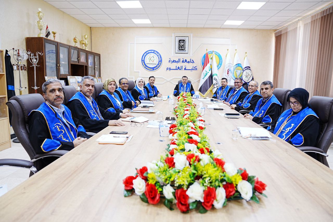 انعقد مجلس كلية العلوم في جامعة البصرة الجلسة الخامسة المنعقدة بتاريخ ٤-٢١/ ١٢/ ٢٠٢٥، برئاسة السيد عميد الكلية الأستاذ الدكتور علي عبد الإمام الرياحي، وبحضور السادة أعضاء المجلس، لمناقشة الموضوعات المدرجة على جدول الأعمال. منها تم اقرار ٧ ترقيات في اجتماع مجلس الكلية ثلاث منها الى مرتبة الاستاذية من ضمنها ترقيتان الى مركز ابحاث البولمر وثلاث ترقيات الى مرتبة الاستاذ المساعد وواحدة مرتبة مدرس لتربية محافظة القادسية