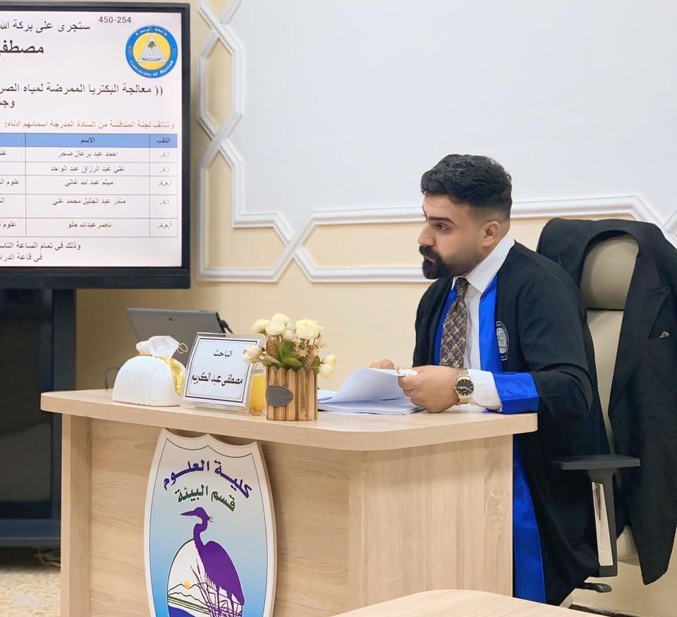 وهدفت الدراسة التي قدمها الطالب مصطفى عبد الكريم جدوع الى معالجة التلوث البكتيري لمياه الصرف الصحي للمستشفيات باستخدام طرق صديقة للبيئة باستخدام المستخلصات النباتية والجسيمات النانوية المخلقة حيوياً من المستخلصات النباتية واستخدامها في معالجة مياه الصرف الصحي.