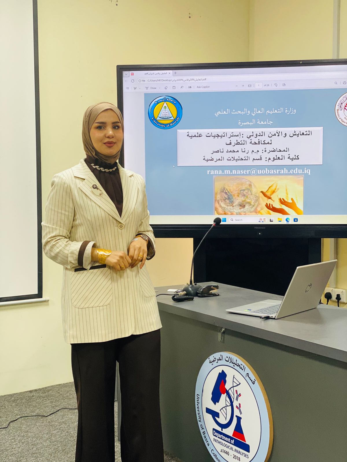 نظم قسم التحليلات المرضية في كلية العلوم بجامعة البصرة محاضرة علمية عن التعايش والأمن الدولي إستراتيجيات علمية لمكافحة التطرف