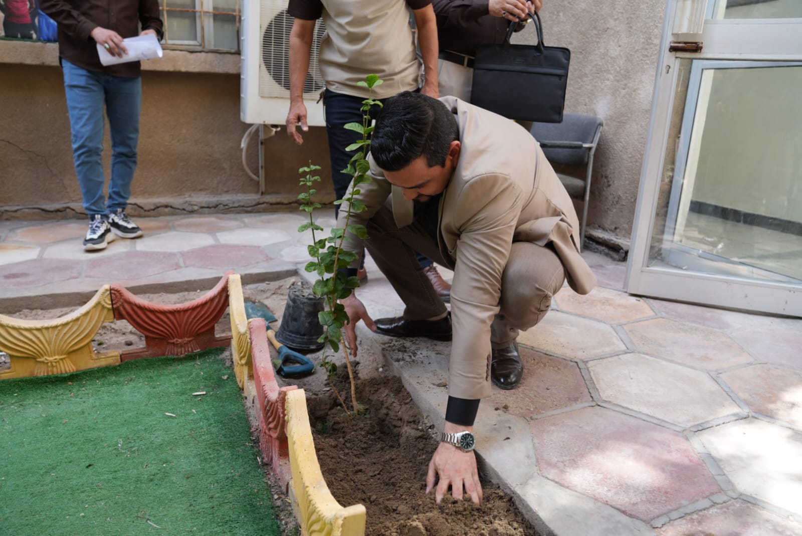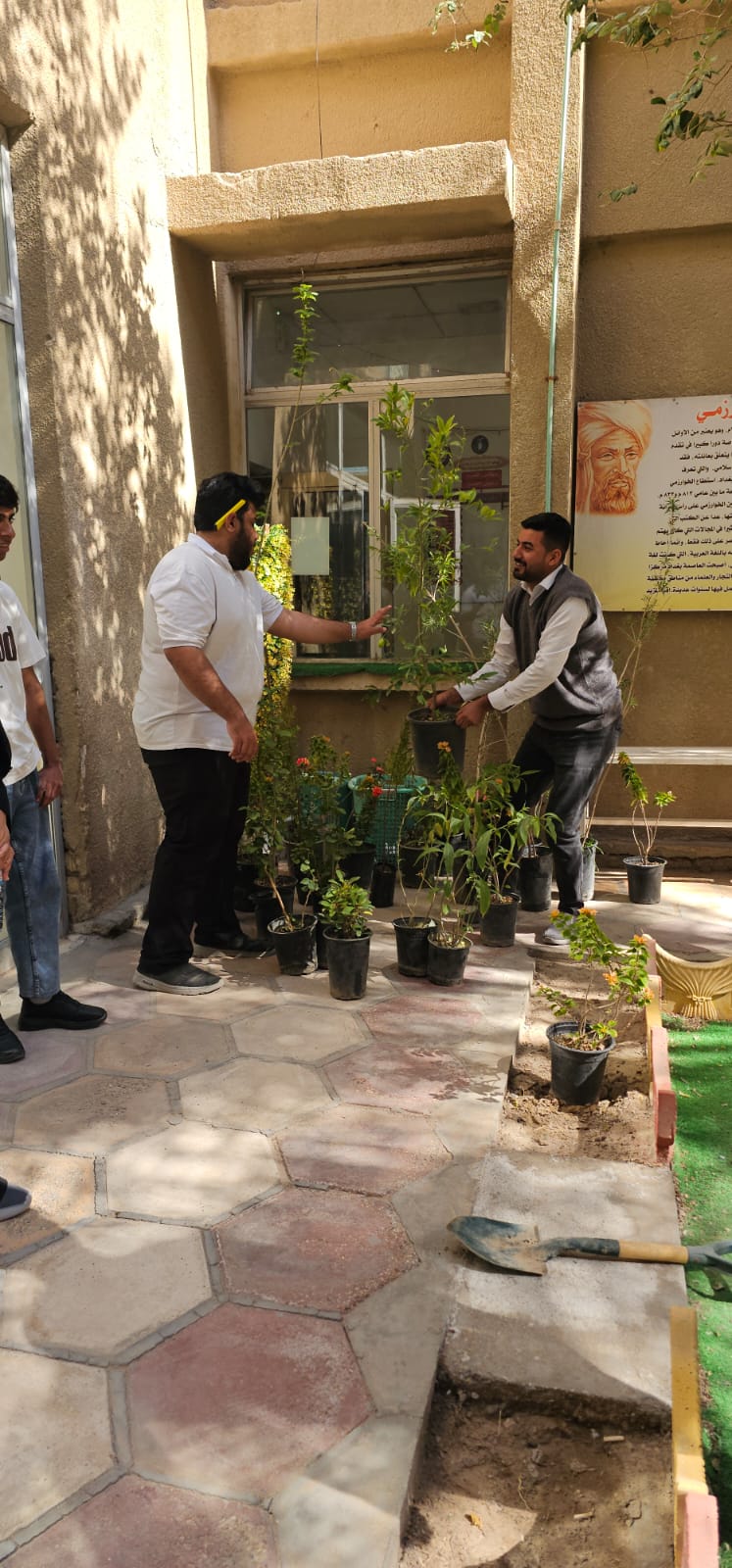 برعاية السيد عميد كلية العلوم ا.د علي عبد الامام الرياحي المحترم وباشراف السيد معاون العميد للشؤون الادارية ا.د رائد مسلم شعبان المحترم ورئيس قسم علوم الرياضيات ا.م.د محمد ساري كاظم وبالتعاون مع شعبة النشاطات الطلابية، اقام قسم علوم الرياضيات في كلية العلوم حملة لتشجير حدائق القسم بمشاركة مجموعة من منتسبي القسم وثلة من الطلبة من مراحل دراسية مختلفة وذلك يوم الاثنين المصادف 22/2/2026 حرصا على تعزيز المساحات الخضراء وإضفاء بيئة جمالية وصحية داخل أروقة القسم، وترسيخ ثقافة العمل التطوعي والمسؤولية البيئية لدى طلبتنا الأعزاء.
