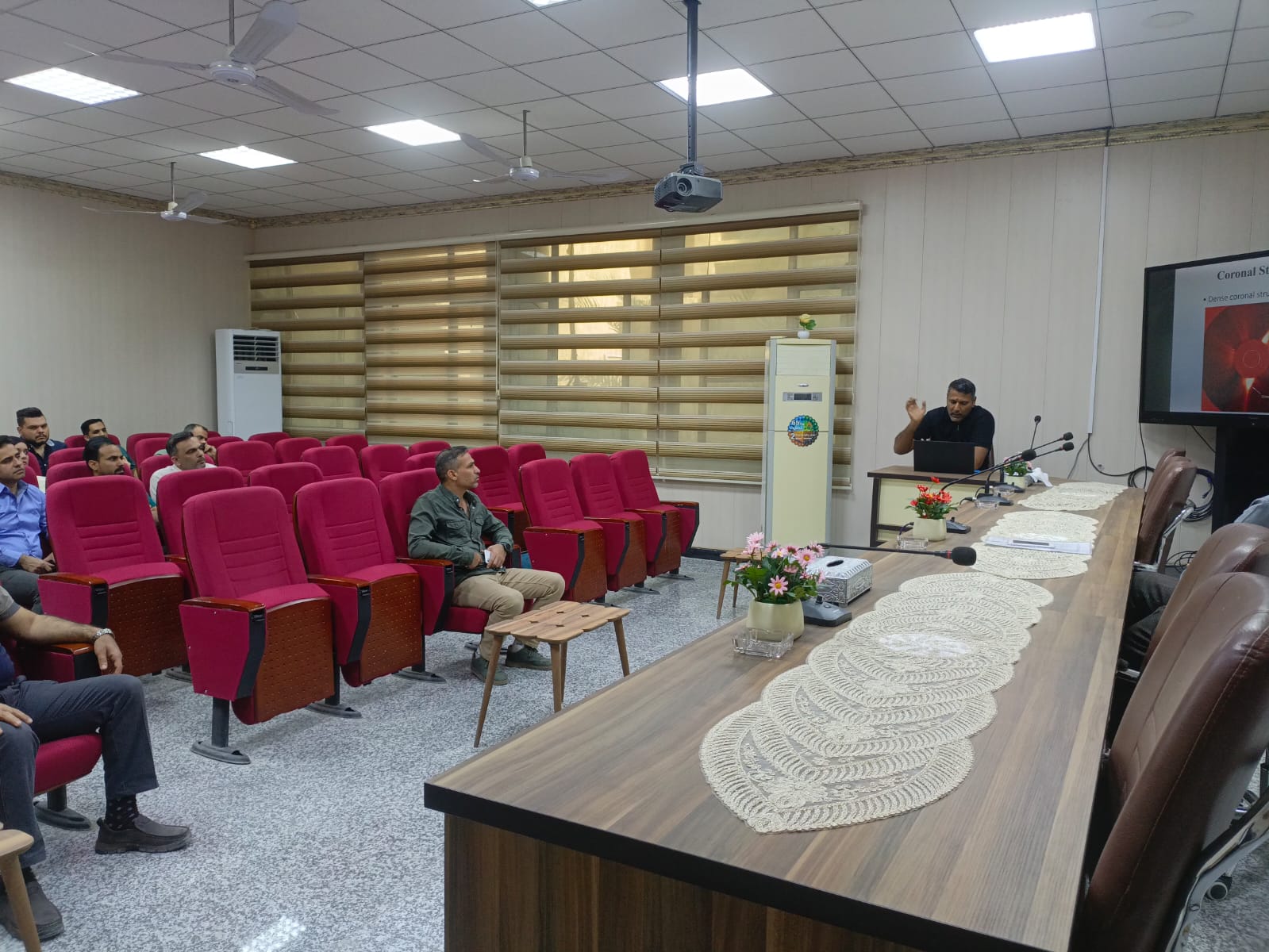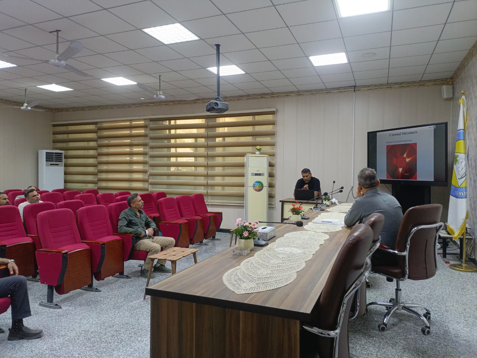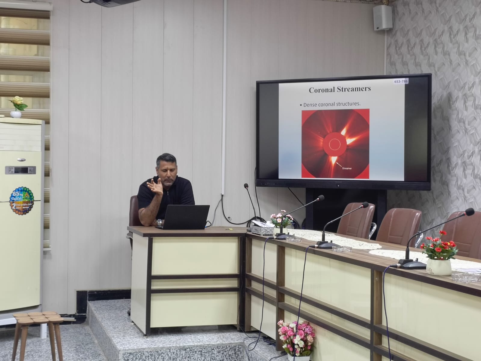 نظّم قسم الفيزياء بكلية العلوم في جامعة البصرة حلقة نقاشية علمية بعنوان (فيزياء العواصف الشمسية: التوهجات والكتل الإكليلية المقذوفة والأشعة الراديوية المصاحبة لها)، قدّمها التدريسي في قسم الفيزياء الدكتور فراس محي، وذلك ضمن الأنشطة العلمية الهادفة إلى تعميق الفهم بالظواهر الفيزيائية ذات التأثيرات الكونية والفضائية.