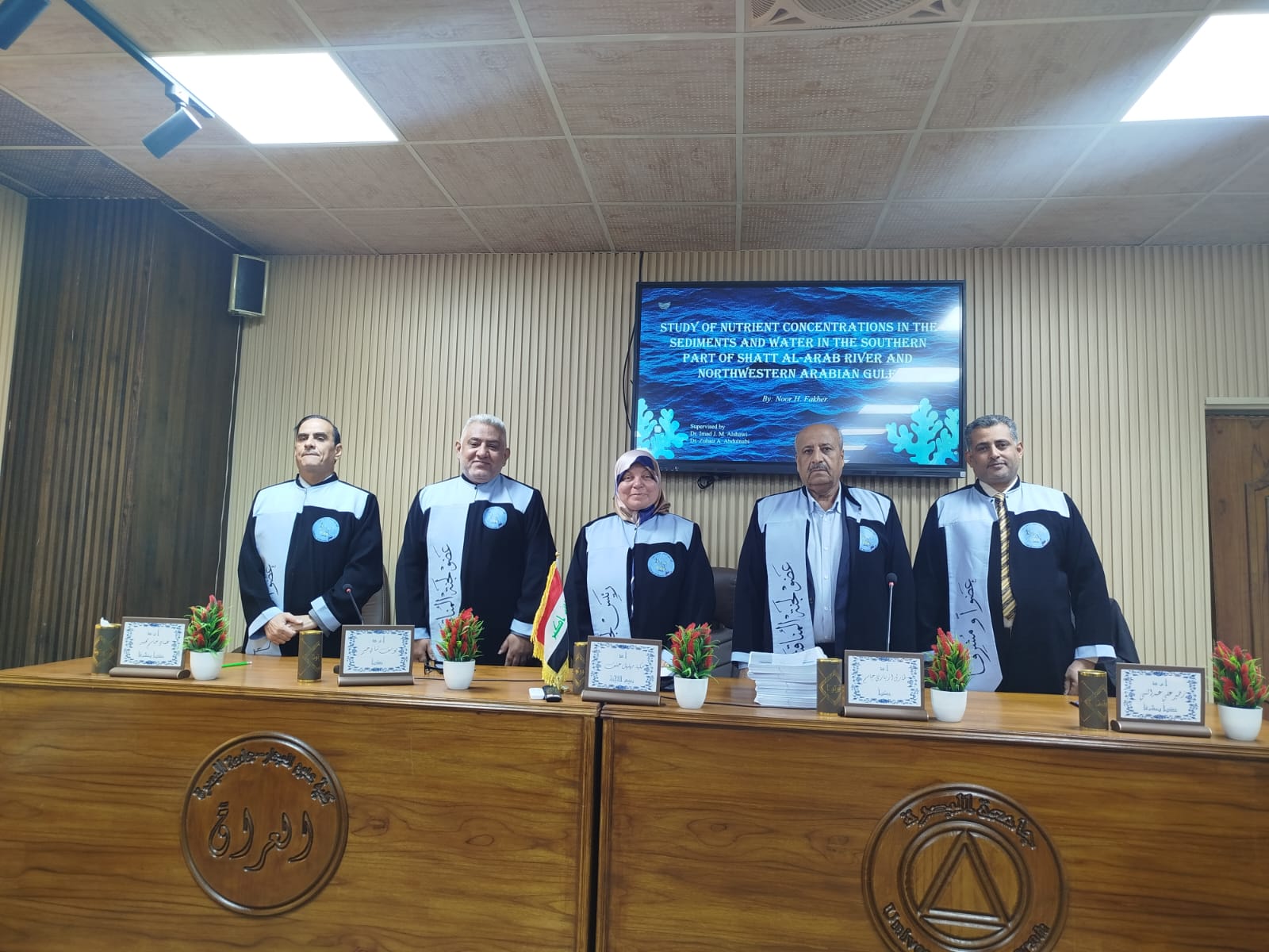 شاركت التدريسية بقسم علم البيئة في كلية العلوم الدكتور مكية مهلهل خلف في مناقشة رسالة الماجستيرللطالبة نور حميد فاخر والموسومة (دراسة تراكيز المغذيات في رواسب ومياة الجزء الجنوبي من شط العرب وشمال غرب الخليج العربي) والتي نظمت من قبل كلية علوم البحار في جامعة البصرة .