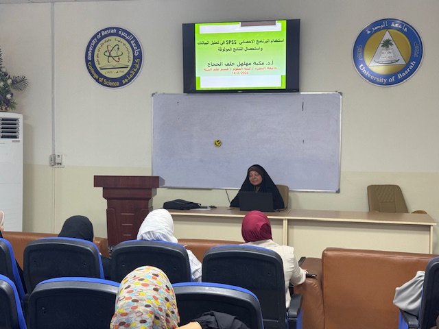 نضمت وحدة شؤون المرأة بالتعاون مع وحدة التعليم المستمر ووحدة الارشاد التربوي في كلية العلوم بجامعة البصرة ندوة بعنوان استخدام البرنامج الاحصائي SPSS في تحليل البيانات واستحصال النتائج الموثوقة.