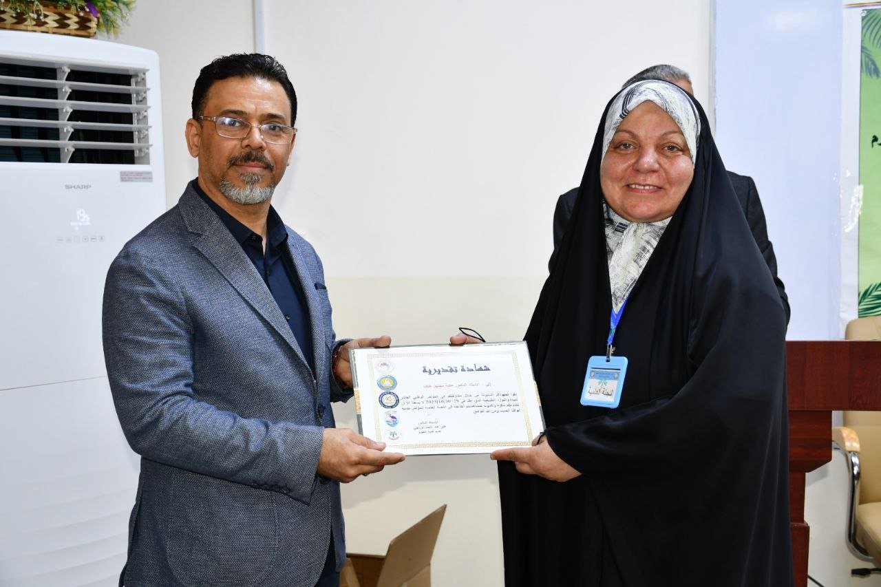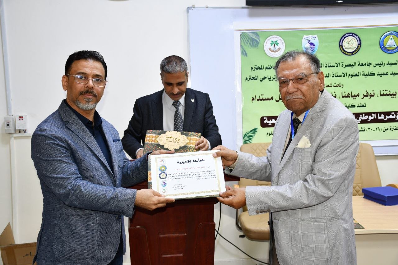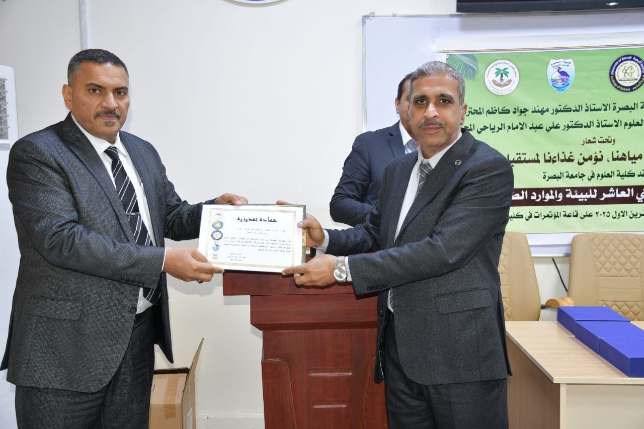 في ختام المؤتمر الوطني العاشر للموارد البيئة كرم السيد عميد كلية العلوم الدكتور علي عبدالامام عبدالزهرة اللجنة التحضيرية والعلمية للمؤتمر الوطني العاشر للبيئة والموارد الطبيعية.